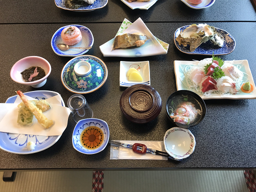 敷島荘の新鮮な日本海の海鮮料理に大満足・・・昼食にしては、豪華過ぎるほどでした。ホテル万長の御部屋はは日本海面していて、御部屋から見える夕日が美しかったです。北沢浮遊選鉱場跡のライトアップに無料でバスを出すサービスもありました。