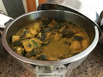 野菜にしろ、お魚、お肉料理にカレーの香辛料を入れて調理します。いろいろな料理を混ぜて食べるそうです。