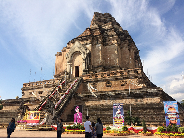格式のある寺で1411年建設の大仏塔は素晴らしい。四方に蛇神のナーガを配し、階段からお堂に入れるようになっていたようです。現在は階段なく、坂になっています。象の像が四方を囲むように配置されていたようですが、かろうじて、残っているのは一つです。今は修復された像が当時をしのばせてくれます。