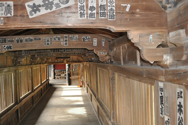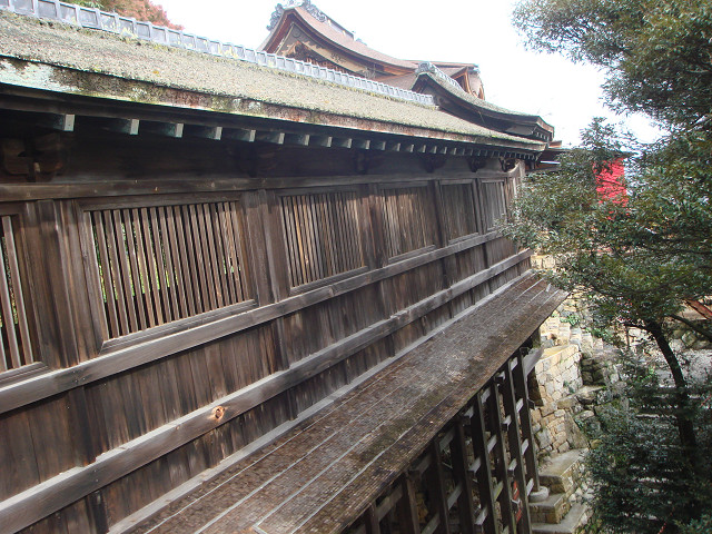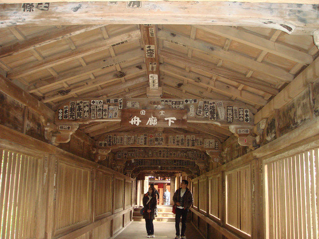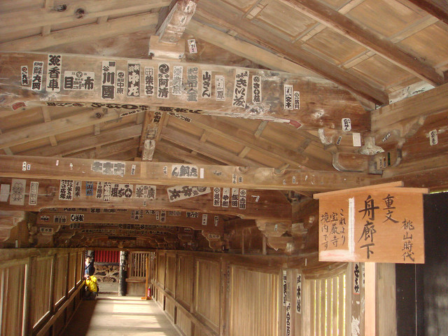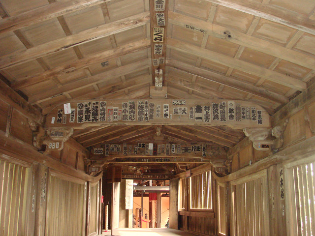 ※舟廊下 宝厳寺観音堂と都久夫須麻神社本殿を結んでいる。豊臣秀吉の御座舟「日本丸」の船櫓を利用して建てたと伝えられている |