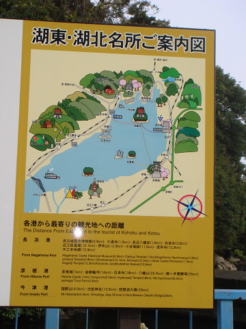 | 竹生島までは長浜のほか大津・今津・彦根から船が出ています。高速道から近いこと、長浜観光も予定していましたので、長浜港から上船することにしました。 | ||
