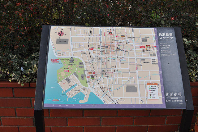 | 駅前に駐車し市内観光。大河ドラマ”お江”のふるさと。秀吉がお城を築いた街。観光スポットとしての黒壁スクエアのにぎわい。鉄道スクエアで文明開化の息吹に触れました。 | ||