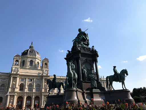 とマリア・テレジア像を挟んで
