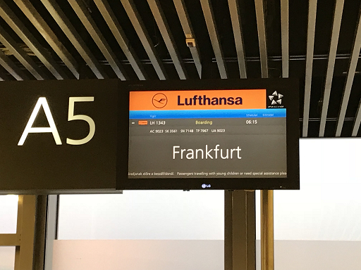 早朝6:15発の飛行機に搭乗するため、早朝3:45分にホテルを出ましたが、フランクフルト空港では予定した時刻に飛行機は飛ばす、7時間くらい空港で待たされました。実際、関西空港に着いたのは、8:20 お疲れ様でした。