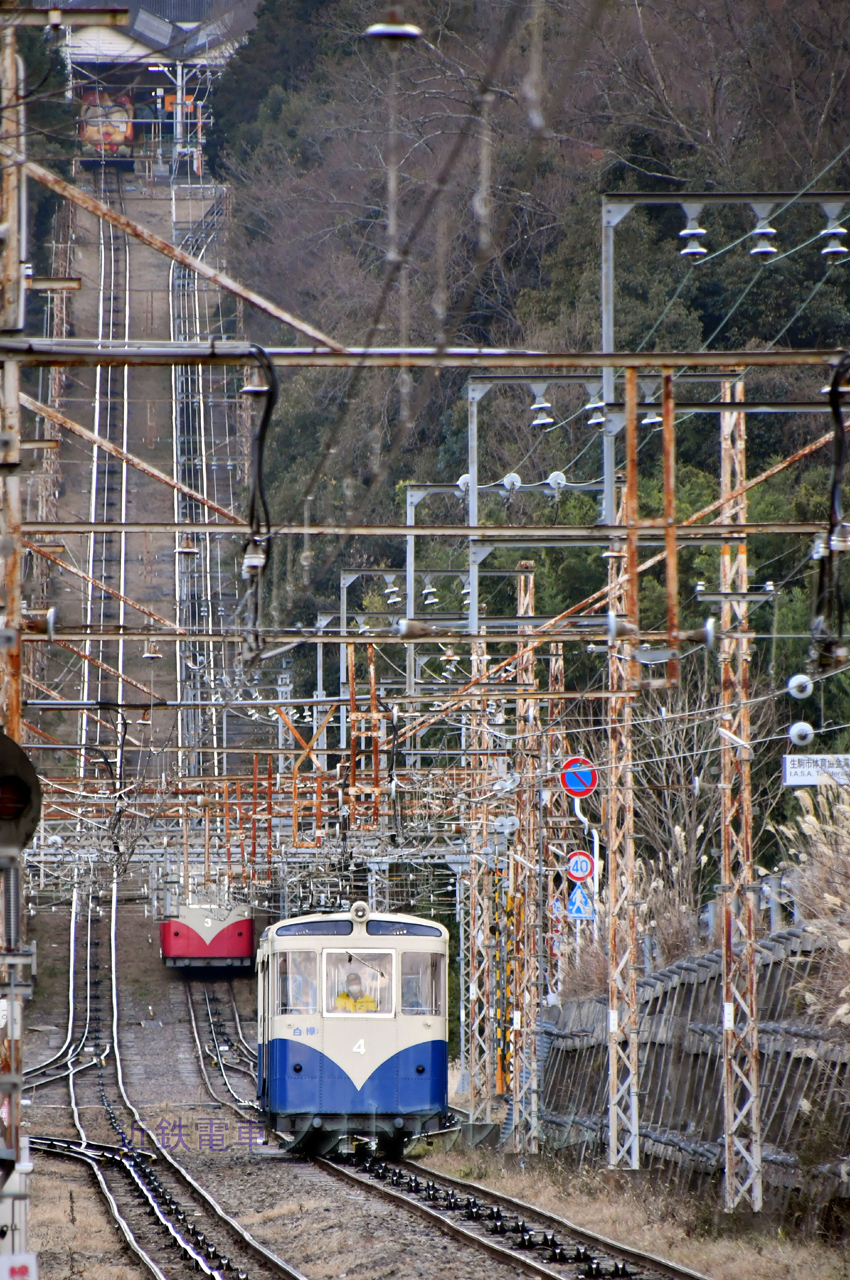 | 日本最古のケーブル線でもある生駒ケーブル宝山寺線、現在は何かと1号線コ11形の「ブル」、「ミケ」がメインに宣伝されていますが個人的には古参車両が今でも頑張っている2号線コ3形の「すずらん」、「白樺」の方が愛着を感じています。今回は宝山寺2号線のコ3、コ4にスポットを当ててみたいと思います。 |