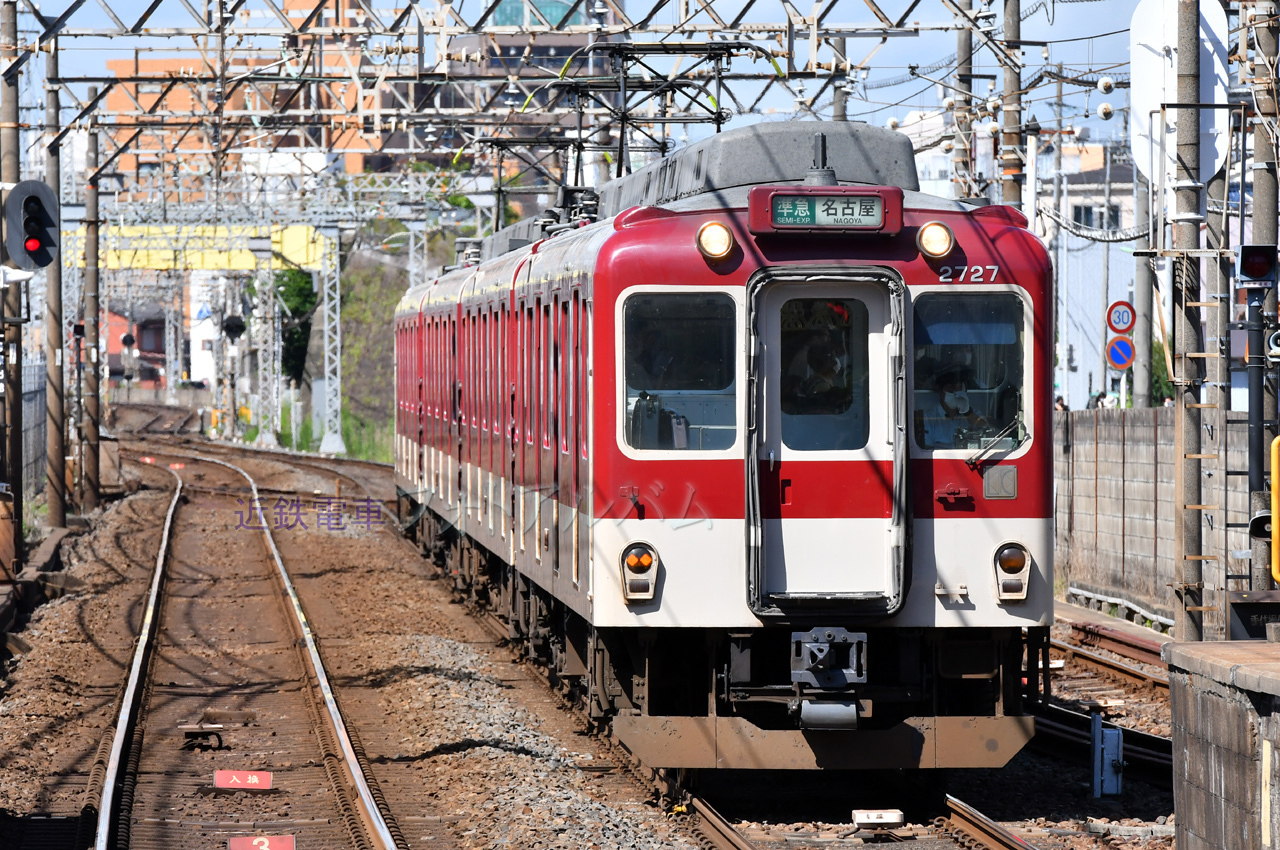 | 前回訪問の時に続いて、伊勢方面からやって来る丸屋根2連車の姿。今回は1810系1827Fで前回の1826Fと併せて残存する2編成の単独運用を見ることが出来ました。 |